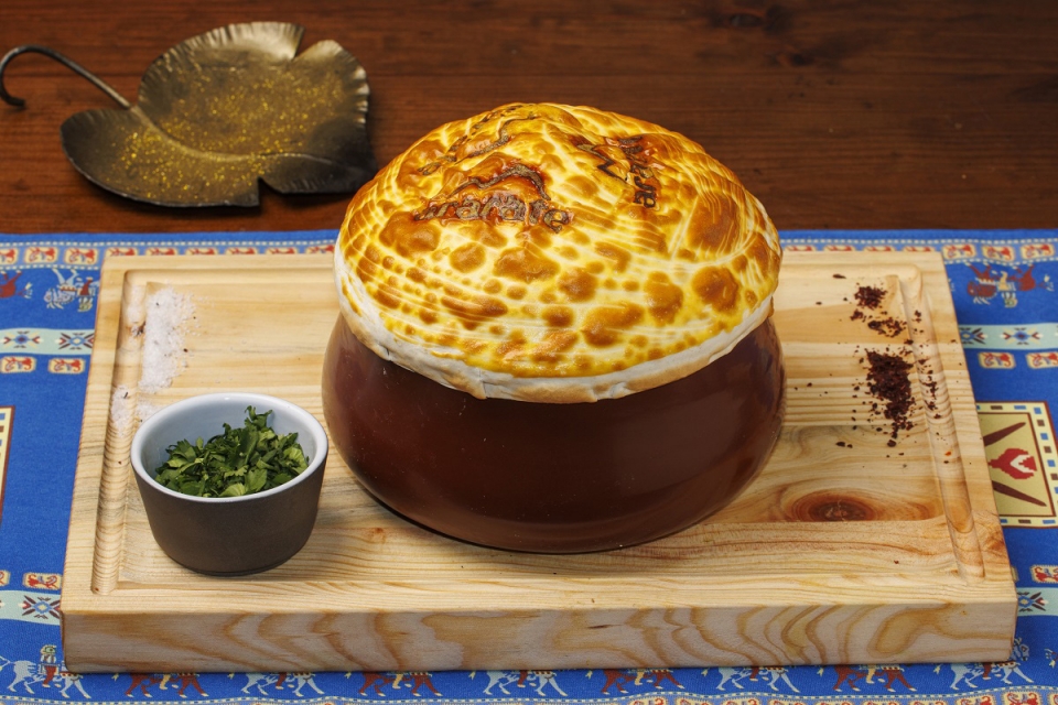 Os estufados e ensopados ocupam boa parte da carta, como o chacapuli (borrego com ervas, um prato que é um símbolo da primavera para caucasianos; 10,5 euros), o tjvjik (guisado de miúdos de cordeiro ou vitela, onde se usam fígado, pulmões, coração e rins do animal; 9,5 euros), o putuk (ensopado de grão de bico, borrego e legumes, servido numa caçarola coberta com um pão achatado, sinónimo máximo da cozinha de conforto arménia; 19 euros) e o khurdjin (borrego ou vitelão assado em forno e servido numa trouxa de pão lavash; 21 euros).