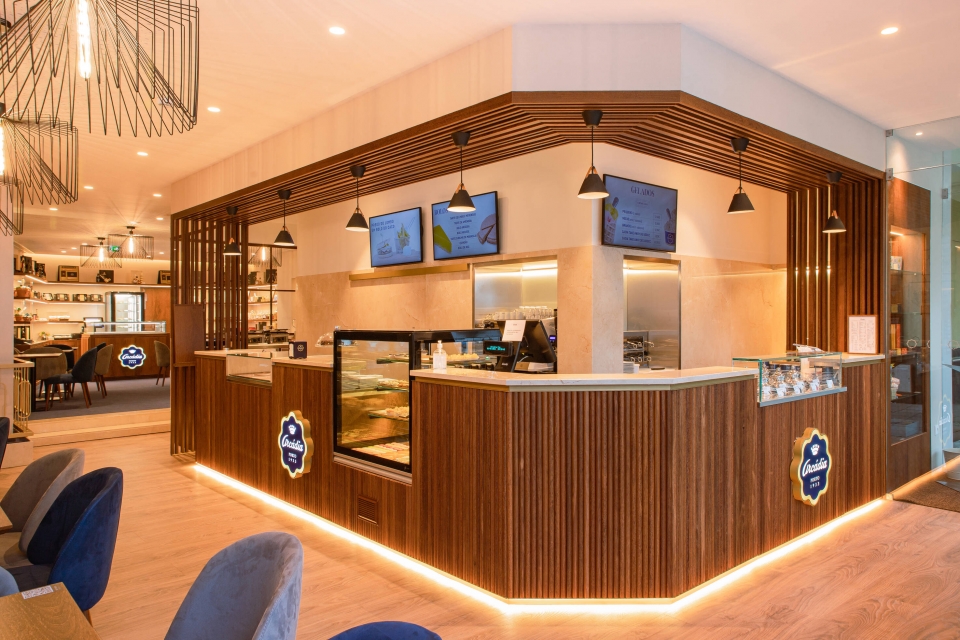 Nesta recente morada, na Rua do Passeio Alegre, os clientes encontram os tradicionais chocolates e amêndoas da marca, produtos de pastelaria, gelados artesanais e taças de açaí, para saborosos lanches.