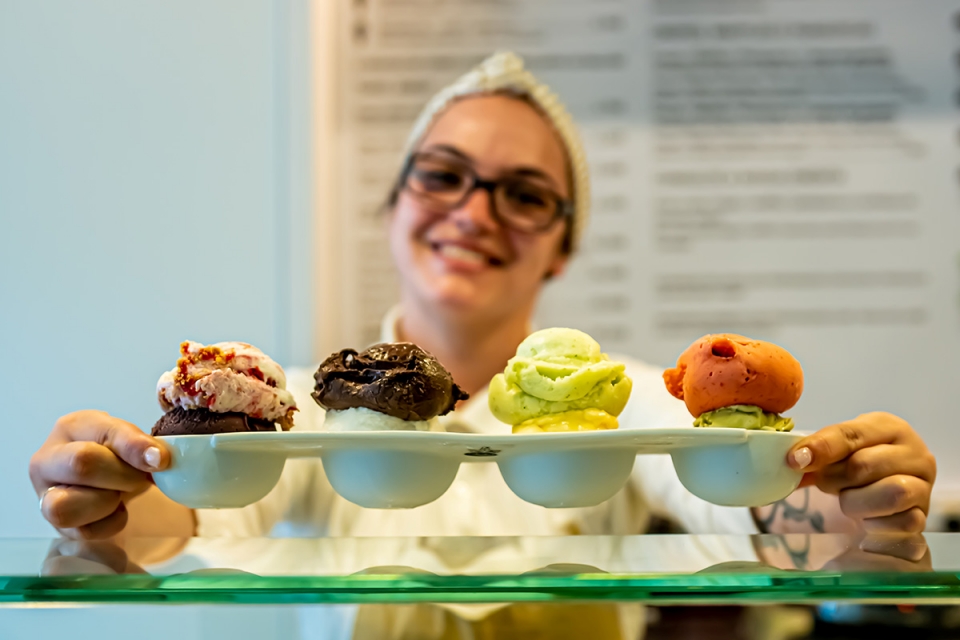 “Pelo menos de dois em dois meses introduzimos novos sabores”, continua o responsável, dando nota dos que estarão disponíveis na abertura da loja: tangerina, morango, o “ex-líbris limão com manjericão”, entre outros sorbets de frutas da época. “Ainda assim mantemos sempre uma grande presença de gelados”.