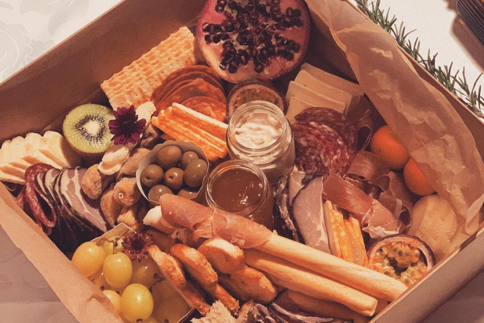 Na impossibilidade de servir as “grazing tables”, como aconteceu aquando da reabertura do espaço, durante o verão, o Chez Café Café, em Famalicão, lançou a box Petiscar, recheada de queijos, enchidos e fruta. Dentro de uma caixa de cartão, cuidadosamente adornada com plantas e fruta desidratada, há espaço para queijos regionais, enchidos como chourição, salpicão, presunto e dois tipos de salame, compota de abóbora e paté de atum, fruta fresca variada, figos, ameixas e damascos secos, tostas e grissinis.