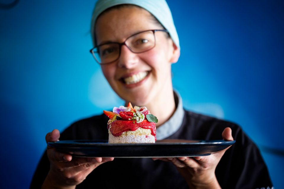 A chef pasteleira, de 37 anos, natural de Aveiro, procura adaptar as sobremesas às estações e prepara-se para introduzir novidades mais frescas, como a charlotte de morango. Tem um perfil discreto e, normalmente, é a primeira a chegar, de manhã, quando tudo está mais tranquilo na cozinha. Mas as ideias, muitas vezes, chegam é quando está a ir para casa, noite avançada, e nem consegue dormir, a pensar nisso. «Uma sobremesa tem de ter crocância, textura de cremosidade e algo mais fofo, como um bolo», defende ela, que gosta de cores, de altura, de frutos silvestres, e tenta jogar com aromas que a apaixonam, como o da framboesa ou o do maracujá.