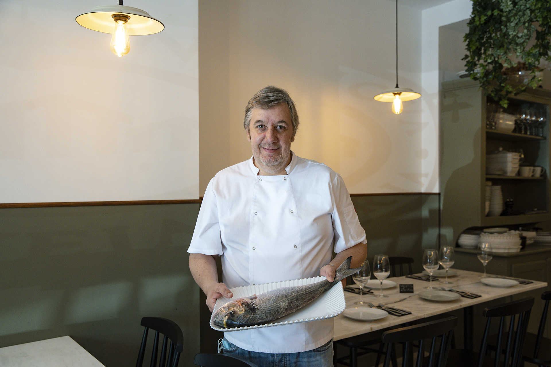 “A base de tudo é a qualidade do produto”, assenta João. Depois, há espaço para várias influências. “Gosto de cozinhar o que as pessoas gostam de comer”, admite. Caril de gambas, croquetes de presunto, gamba vermelha do Algarve – o mar na boca -, ovos rotos, filetes de pescada fresca – escalada e preparada ali mesmo – e o bife raspado (receita que a avó fazia para ele em criança) são algumas das propostas. Nas sobremesas, a tarte de noz tem-se revelado um sucesso, mas a de chocolate também não lhe fica atrás.
