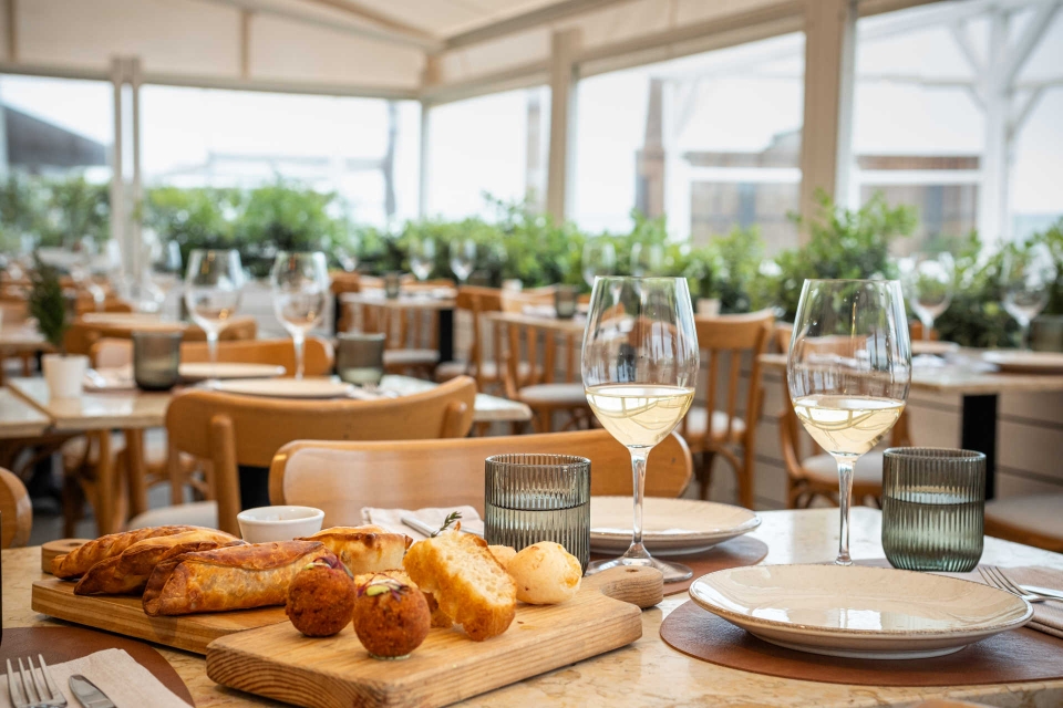 Não fosse o mar o principal motivo que fez nascer o novo Belos Aires Praia, além da elegante sala interior com vista para a cozinha aberta, o espaço prima ainda por ter duas esplanadas: uma instalada sobre o areal, mais veranil, mas ainda assim procurada em qualquer dia de sol, mesmo que só para beber um copo de vinho – português ou argentino, que a dualidade também chega às bebidas -; e outra mais recuada, com cobertura e aquecedores que a resguardam da nortada, mas permitindo igualmente vista privilegiada para a praia, o mar e o pontão.