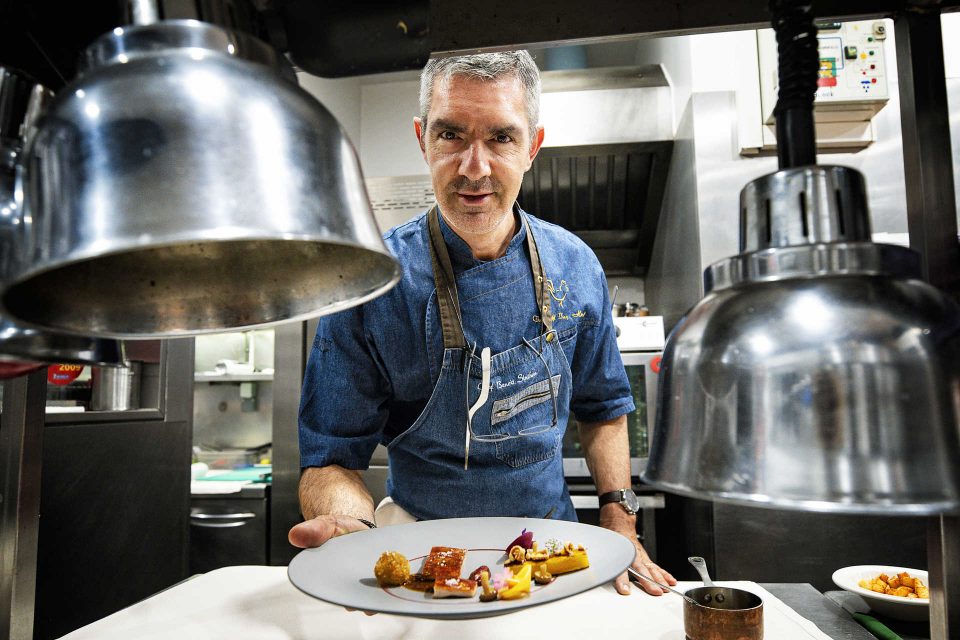 Corria o ano de 2004 quando Benoît se estreou no comando do Il Gallo d’Oro, então um restaurante italiano (daí o nome). Tinha já um currículo recheado de experiências noutros espaços, alguns com estrelas Michelin, em França e na Madeira. Casas mais pequenas e grandes hotéis, conheceu diversas realidades. Viu celebridades chegar de helicóptero, jornalistas a filmar na cozinha. Aprendeu lições como o respeito pelas matérias-primas, capacidade de liderança e gestão do stress. E tudo isso o preparou para o sítio onde está agora.