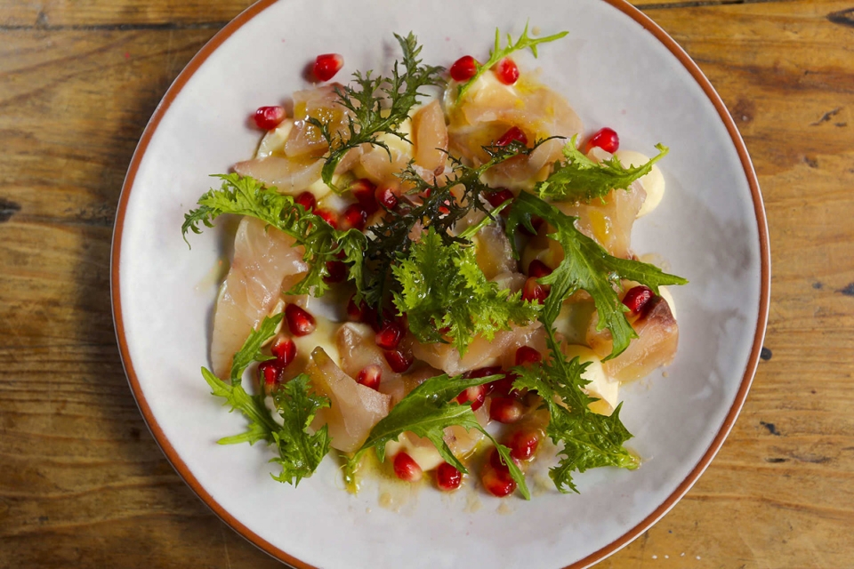 Neste novo espaço, que em tudo convida à partilha, a chef imprime um toque autoral à carta, privilegiando os produtos sazonais e locais. O couvert é uma boa surpresa, composto por bolinhas de queijo e chucrute, patê de fígado de frango, puré de cogumelos, chips de couve kale e crackers de sementes. Nas bebidas, há uma clara aposta nos vinhos sazonais. Para petiscar em pequenas doses, o lírio curado com romã, pastinaca e mizunas é uma boa opção, entre outras.