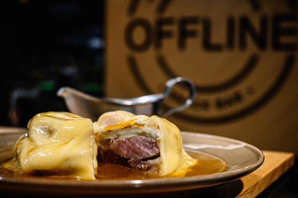 No Offline 2, em Mafamude, a francesinha que sai mais é a especial com bife de lombo de vitela, que ainda leva fiambre, mortadela, salsicha, linguiça, pão tostado, ovo, queijo gratinado e um camarão por cima, e custa 10,80 euros. Ingredientes de qualidade, como carne da zona de Lafões e pão de forma cozido a lenha, são algo de que o proprietário não abdica.