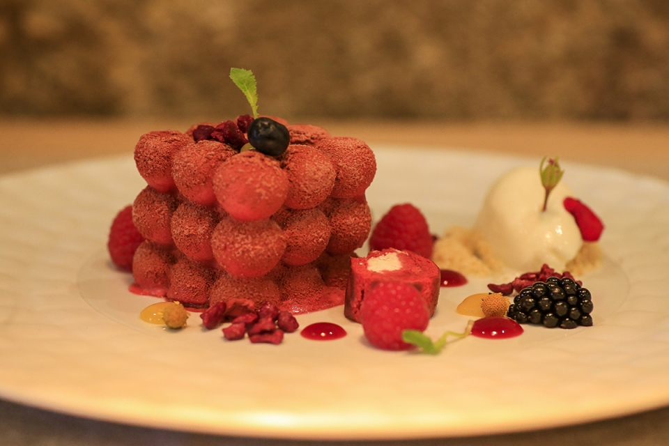 A carta é composta por pratos de carne, peixe e vegetarianos, além de entradas e sobremesas, que se querem surpreendentes e apelativas a vários níveis. Exemplo disso é o prato “texturas de vitelão, batata confitada com recheio de trufa, cebolete, cenourinhas da horta, alho francês, jus de vitela e pimenta rosa”, que inclui um crocante feito com o tendão do animal (após muitas horas de cozedura e vários processos) e lembra uma floresta, pela forma como está desenhado.