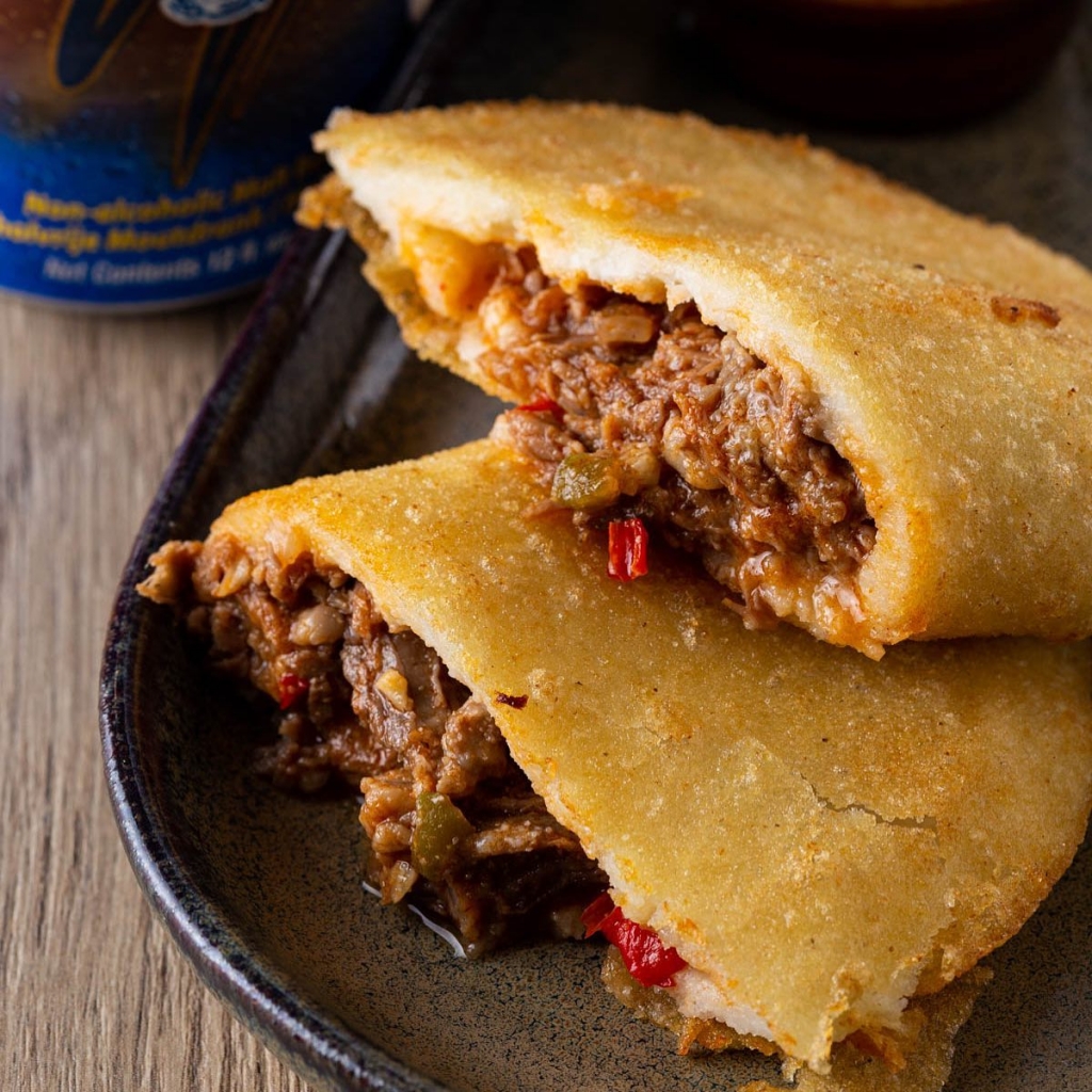 Na carta, os pratos típicos do país, como as arepas, empanadas e os tequenhos – “são uns rolinhos de queijo que se comem em todas as ocasiões, casamentos, batizados, festas…”, conta Karina -, juntam-se a especialidades de outros países da América Latina, como os nachos e tacos mexicanos, e a hambúrgueres artesanais criativos. O mais popular é o TequeBurguer, que tal como o nome indica é uma adaptação dos tequenhos em formato de pão de hambúrguer, recheado com queijo, que leva carne, alface, cebola caramelizada, bacon e molho napolitano, e chega à mesa numa campânula envolto em fumo.