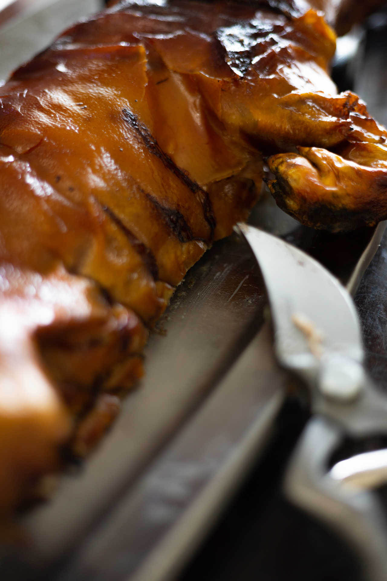 Passam poucos minutos do meio-dia quando os clientes começam a preencher as mesas do Dom Leitão, com cara de quem já espera o melhor. Para tudo estar a postos diariamente, a assadura da carne começa às nove e meia da manhã, prolongando-se por cerca de duas horas e meia. “Cada leitão é um leitão”, diz o gerente Marco Gomes, o que significa que uns precisam de mais tempo do que outros para ganhar a tal pele dourada e estaladiça. “É a melhor parte”, considera.