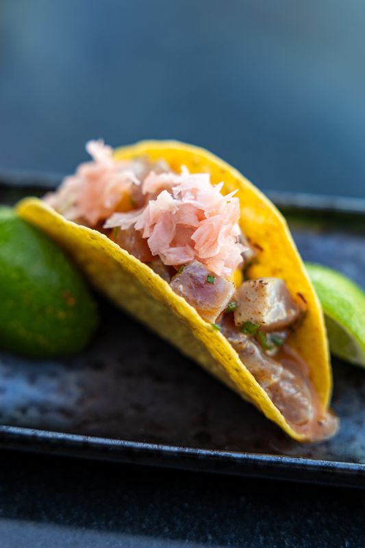 Jorge Fernandes confessa que, nesta primeira versão do bar de tacos e ostras, a equipa de cozinha – na qual conta com João Cunha como souschef – optou por combinações de sabores mais consensuais para a maioria do público. No futuro, poderá haver espaço para propostas mais arrojadas. O taco de atum braseado com kimchi e cebolinho é o que mais tem tido pedidos e as tortillas têm a particularidade de a massa ser cortada e frita no restaurante.