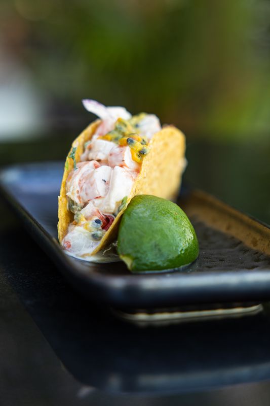 - Taco de camarão com maracujá. (Fotografia: DR)