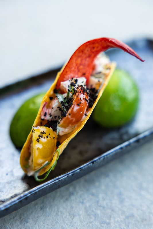 - taco de lavagante com molho cítrico. (Fotografia: DR)
