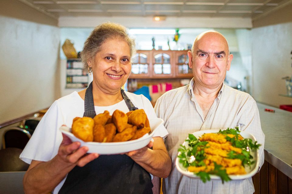 O casal Maria Rosalina e Manuel Barbosa, guarda discreto, ao cimo da Rua da Corredoura, no centro de Caminha, um tesouro bem guardado. O amor que os une há 43 anos e que parece que se transmite para os apetitosos petiscos e bolos, que diariamente colocam na montra. E para a comida, que servem de prato do dia ao almoço e, por encomenda, aos sábados e aos domingos. A casa conhecida por tasquinha do Manuel da Fana, a alcunha do proprietário, é pequena, mas é grande no bem receber e no sabor dos seus comes e bebes.