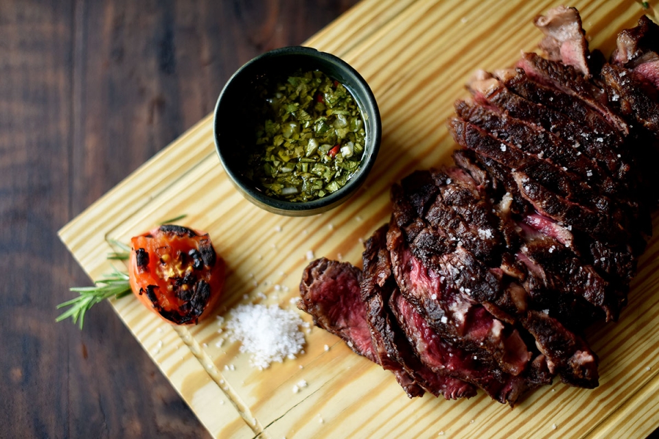 Na grelha, Fábio Gomes trabalha com vazia, alcatra, cachaço de porco bísaro e frango, entre outros cortes. Já no capítulo das maturações com 20 e 30 dias – as quais conferem outra textura e sabor à proteína – há lombo de novilho, tomahawk para duas pessoas, entrecôte e picanha. Da frigideira é proposto o piano de porco com molho de barbecue e batata assada.