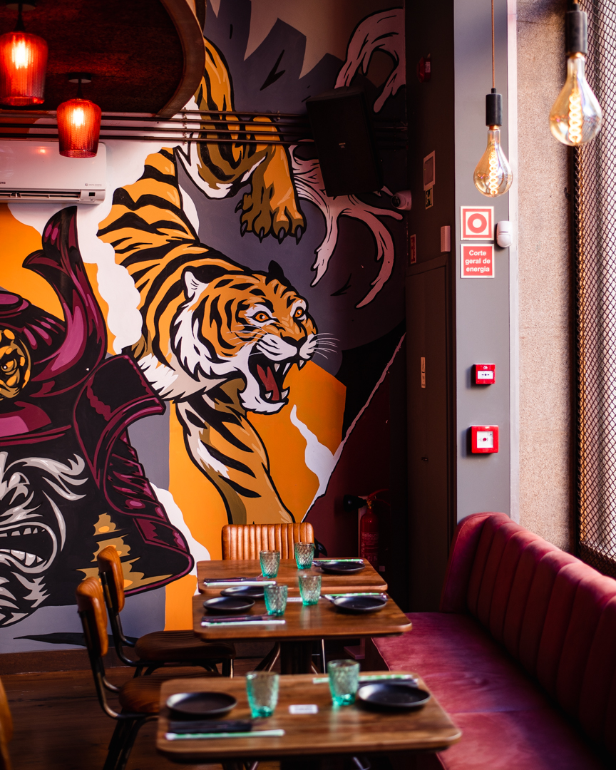 À sexta e ao sábado a cabine é ocupada por diferentes DJ, que garantem a festa até às 4 horas. Foi a pensar nestes serões mais prolongados que se criou uma carta de cocktails versáteis, ou seja, que sejam tão bons a acompanhar comida como noites de dança. As 16 propostas dividem-se entre clássicos e de assinatura, destacando-se, nos últimos, o Asian Mule, numa releitura do Moscow Mule, com sake em vez de vodca, e o Sasuga!, que junta Bombay Sapphire, cordial de jasmim, sumo de limão e kombucha de jasmim. A carta de bebidas é extensa, com cerca de 30 referências de sake, kombuchas, chás, vinhos, espumantes e sangrias, além de diversas bebidas espirituosas.