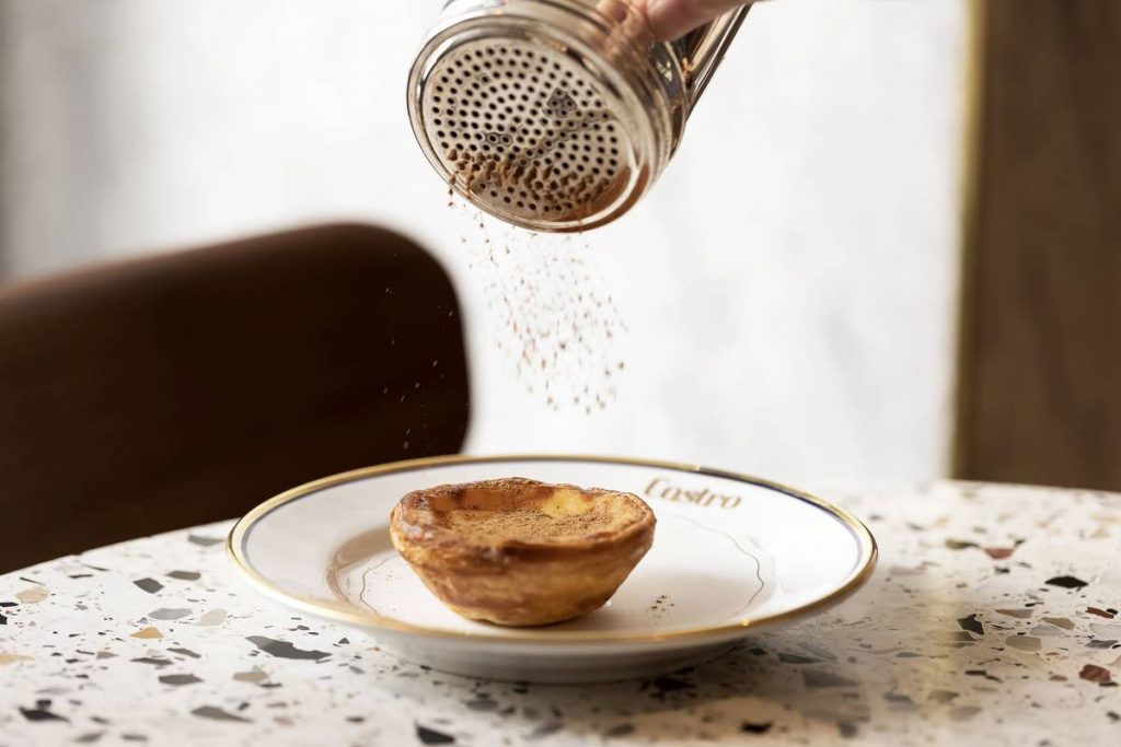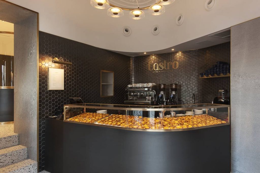 Há quem leve pastéis de nata às dezenas, em caixinhas acomodadas em sacos de luxo. Comer na Castro tem, porém, todo o seu encanto. O espaço é de grande beleza – marcado pelos azulejos azuis e brancos da fachada e pelo dourado da decoração – e o serviço é rápido e atencioso. O inverno aquece-se, assim, com um pastel de nata e chocolate quente italiano. Ou até com um brinde com ginja ou vinho do Porto.
