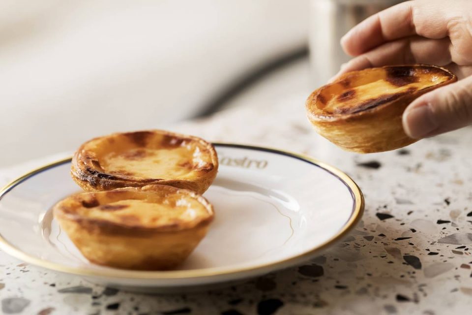 Os pastéis de nata chegam à mesa em pratos de rebordo dourado, produzidos pela Vista Alegre. Vêm ligeiramente queimados no topo e devem ser polvilhados com açúcar em pó ou canela. A primeira dentada é sonora e o recheio, cremoso, é tudo menos enjoativo. Quem preferir pode comê-los à colher, e mesmo passados dois dias, é expectável que os pastéis de nata conservem a crocância da massa folhada.