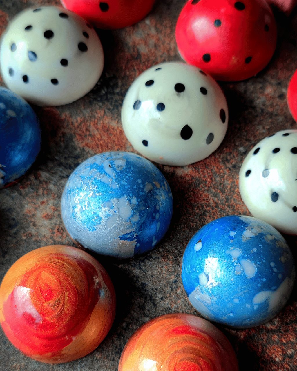 Catarina dá a saborear “puro luxo feito à mão”, resume. Primeiro, vieram os bombons artesanais, pintados um a um e personalizáveis: podem ter diferentes recheios, diferentes cores, e existem em versão vegana. “O grande objetivo é proporcionar uma verdadeira experiência gourmet”, defende, e isso passa tanto pelo sabor e pela crocância como pelo brilho, pelo design. Aos bombons somaram-se, entretanto, barras de chocolate e outras propostas. “Em alturas festivas, temos o panetone de chocolate belga e o bolo-rei de chocolate belga, sem frutos cristalizados e sem frutos secos, para pessoas que odeiam o bolo-rei do Natal”, exemplifica, acrescentando à lista as “cookies gourmet de manteiga” e, claro, as sugestões de Páscoa (ler abaixo).