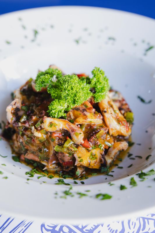 São 13 os novos pratos, devidamente assinalados nos menus entregues na mão dos clientes, à mesa. Nas entradas frias há agora salada caesar de gambas, salada de bacalhau e uma bem temperada salada de polvo; e nas entradas quentes, cogumelos portobello salteados e pica-pau de atum com amêijoas. Nos principais de peixe são novos o arroz de carabineiro e a lula grelhada ou al ajillo (o mesmo molho de alho, piri-piri e salsa picada das gambas).