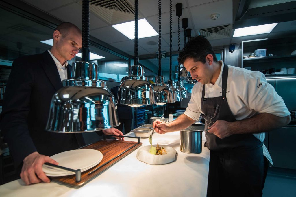 Filipe Carvalho assina toda a carta do Fifty Seconds by Martin Berasategui à exceção de dois pratos icónicos do chef catalão, que nunca sairão do menu: o mil-folhas de foiegras e a salada de verduras e lavagante, que demora 40 minutos a preparar. “Tudo o resto é suposto refletir a nossa identidade, porque o produto é diferente, a cidade é diferente, o meu percurso é diferente e o Martín quer que o projeto tenha a identidade Filipe Carvalho”, acrescentou o português no comunicado.