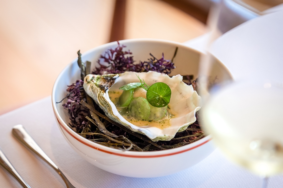 A carne provém quase toda da região do Douro (e alguma do Minho), caso do cordeiro de leite assado servido com bulgur; ou ainda o novilho, guarnecido com puré de batata e legumes braseados. Das lotas nacionais chega o peixe do dia, servido braseado com bivalves e lulas, numa intensa caldeirada. Ou ainda o marisco para o arroz de lavagante. Nas sobremesas, há delicadas criações, como o mil-folhas com creme fumado e caramelo salgado. É um lugar para ir com tempo, para um almoço demorado e uma visita às vinhas.