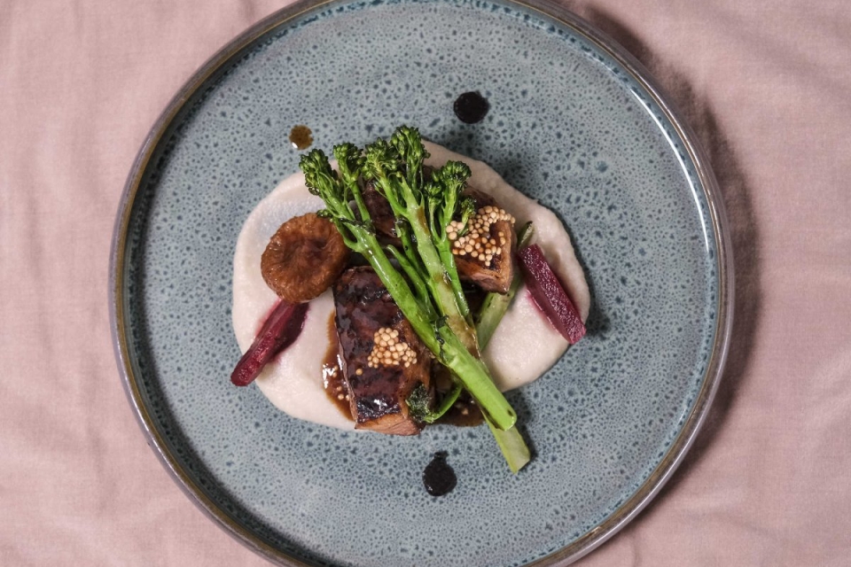 Muitos dos pratos principais também são recentes, podendo destacar-se o peito de pato marinado em ponzu com puré de topinambur, alho negro, figo, sementes de mostarda e pickles de beterraba. Nesta cozinha contemporânea com matriz nacional, o chef usa “elementos que fazem a ligação ao território”. Exemplo disso é ainda a sobremesa de banana acompanhada com mousse de manteiga de amendoim, cremoso de chocolate de leite e gelado de laranja caramelizada.
