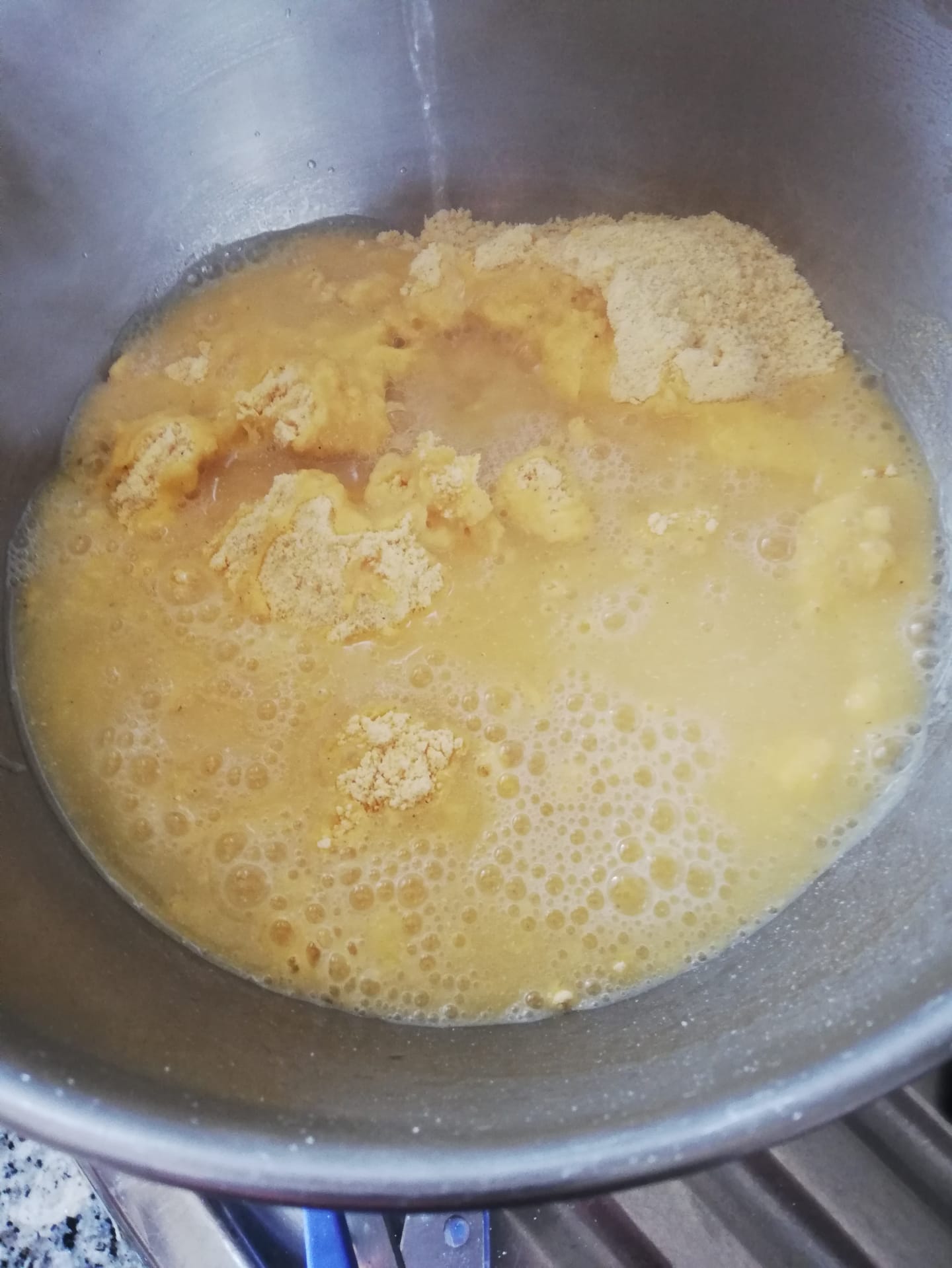 Amassar tudo, adicionando, aos poucos, a água fria, até que a massa não cole nas mãos.