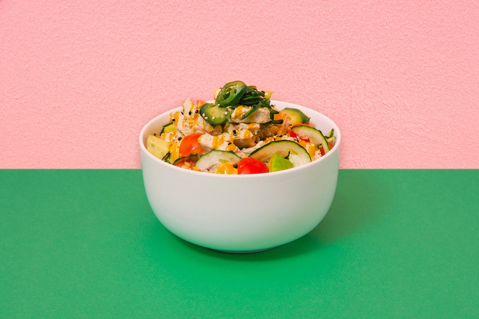 A estrela da nova poke bowl Chicken Not Chicken Poke é o frango de origem vegetal, “composto principalmente por proteínas de soja”, mas que tem “todo o sabor da carne”. Segundo comunidado, “é rico em ferro e vitamina B12”. O “frango” vem acompanhado de arroz integral, pepino, tomate cereja, abacate, molho de mostarda, mel, molho especial, sésamo e jalapeño.