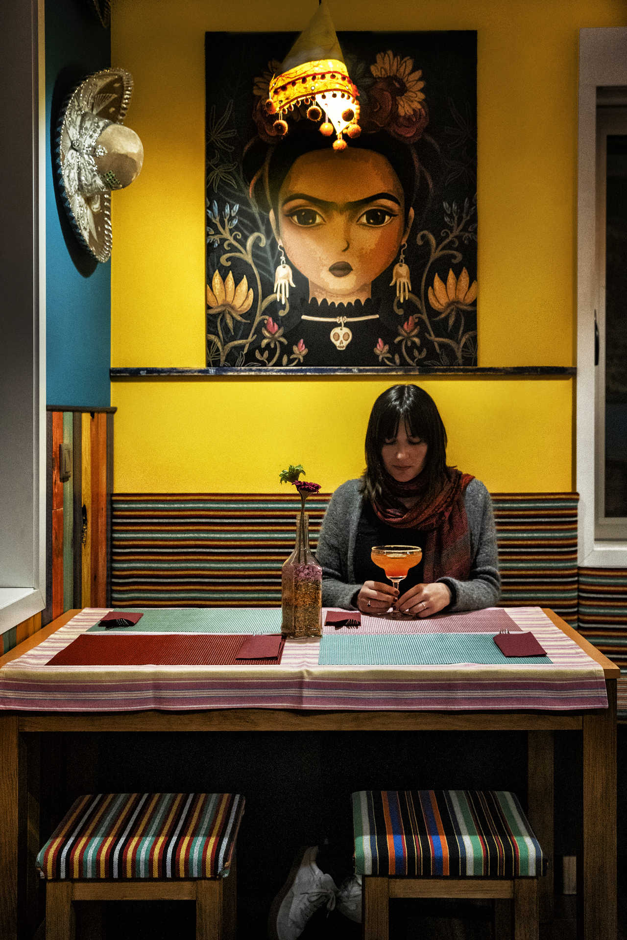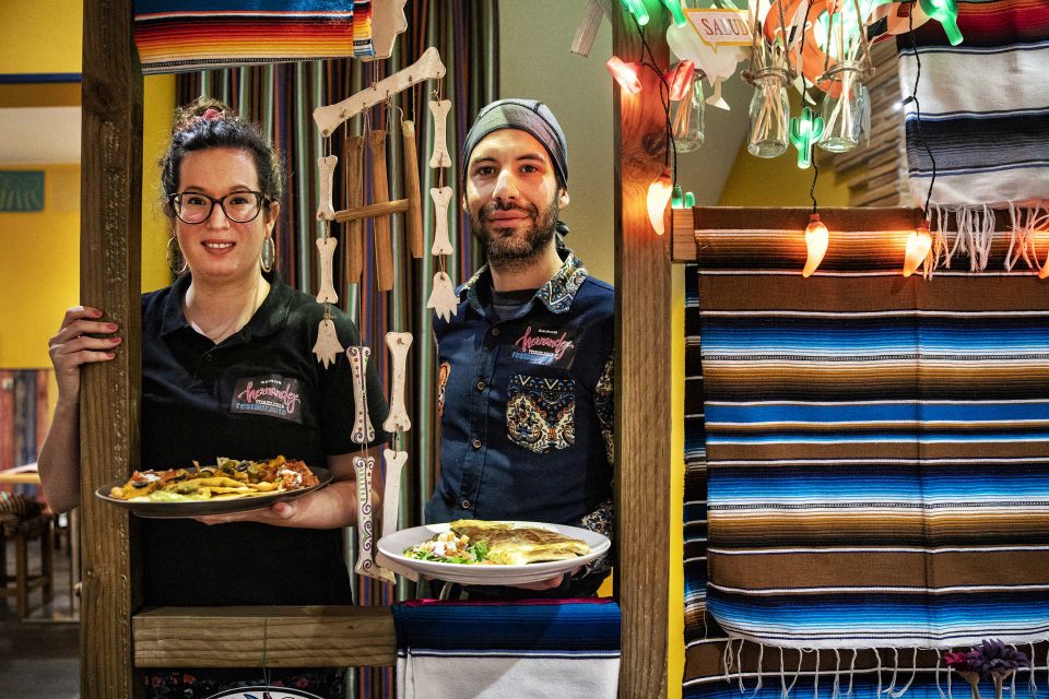 Para completar, há cervejas mexicanas, sangrias e margaritas com sabor a morango e limão, sem esquecer o sal com laranja desidratada na boca do copo. As diversas tequillas e o mix de nachos (com guacamole, carne, queijo cheddar e pico de gallo) ficam para uma visita futura ao restaurante, que tem vários cantos multicoloridos para os clientes tirarem fotografias – e acessórios como mantas ou balões de fala.