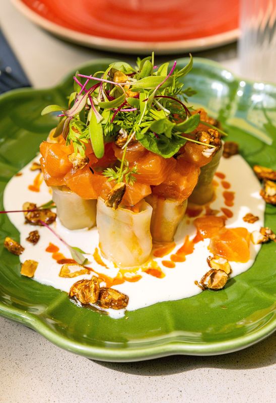 Tártaro de novilho de vazia maturada, caramelo de soja, chili oil, chalota em pickles, maionese fumada e won-ton; tacos de camarão na robata com salsa chipotle, couve, abacate e cebola; croquetes de quinoa, espinafre e queijo cheddar; e pulled pork com mini bolas-de-Berlim, salada coleslaw, puré de cebola caramelizada, pickles e sementes de sésamo também fazem parte do menu. Tanto este como o de brunch podem ser pedidos para a mesa, a qualquer hora.