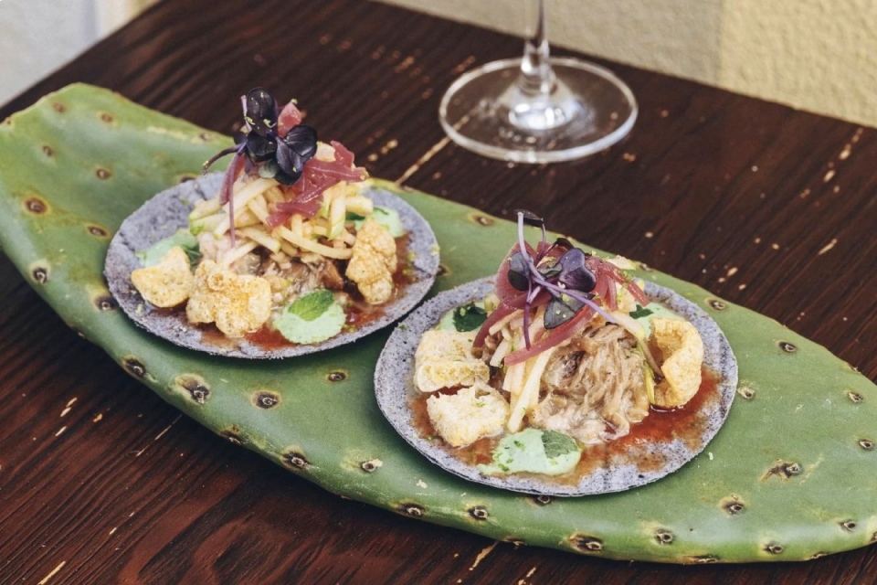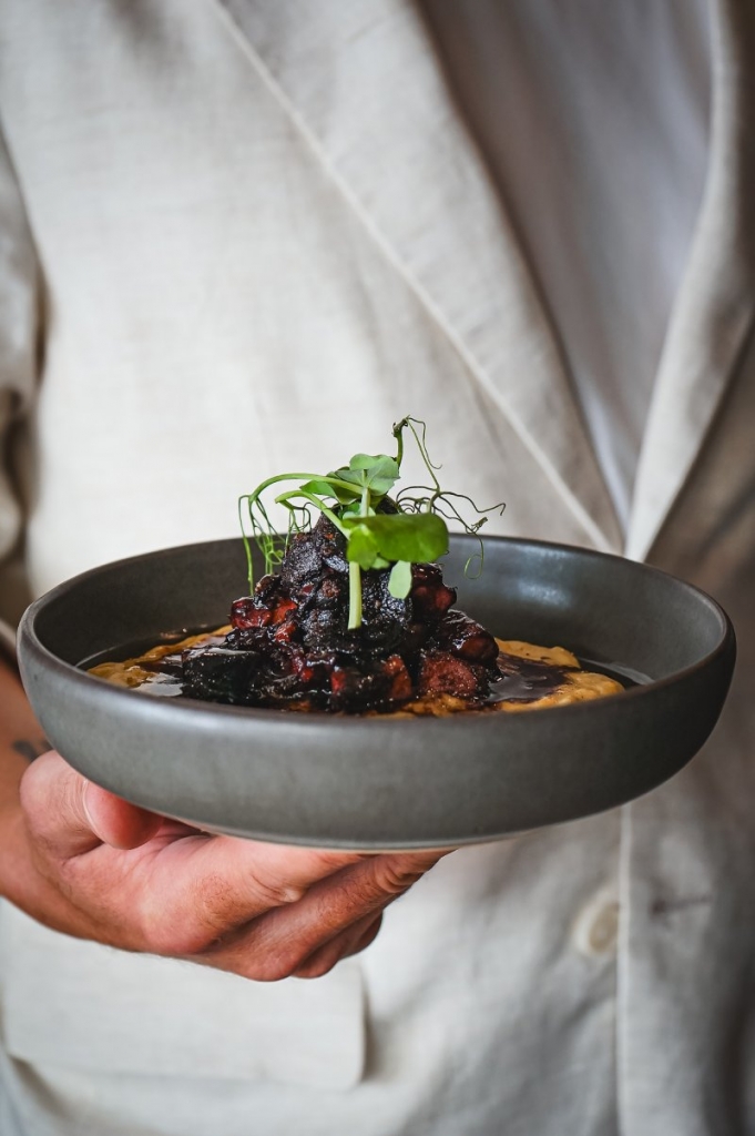 Decorado com um gosto moderno e irreverente (a caminho da casa-de-banho há um néon cor-de-rosa a dizer “Send me nudes”), o espaço amplifica o ambiente e modo de estar dos outros dois negócios da dupla – os restaurante Zebra, uma cantina neo-italiana e Com, uma barra de 12 lugares com pratos crus -, ambos no centro da capital algarvia. Tendo herdado o espaço já montado, Jorge e Pedro optaram por manter apenas a garrafeira, uma amostra de cerca de 400 referências disponíveis. O menu, sempre em mutação, propõe 28 pratos.