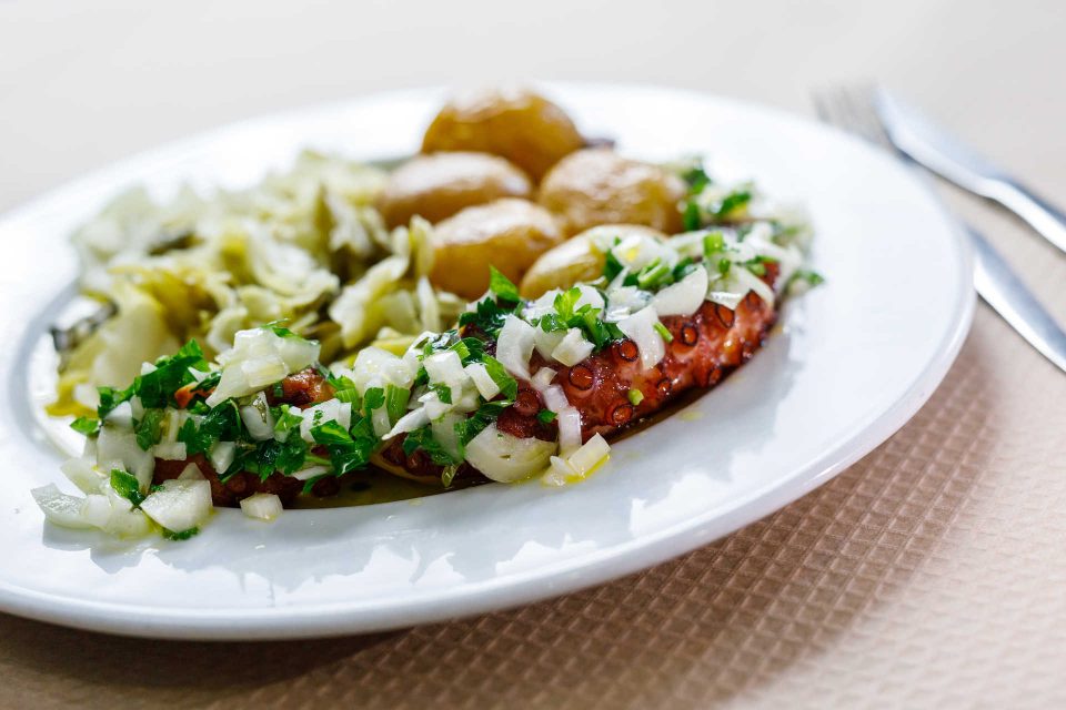 Especialidades: Polvo à lagareiro, bacalhau com broa, bife de peru, picadinho, salmão grelhado.