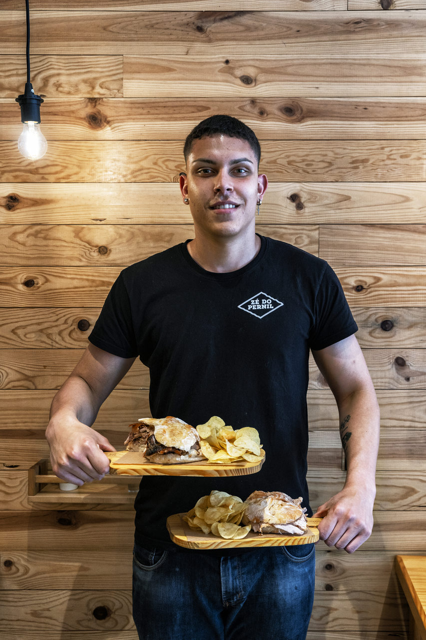 Trata-se do segundo restaurante da marca Zé do Pernil, nascida em Viseu. Tudo começou com uma receita de família, mais especificamente, da avó Carma, que servia pernil assado no forno em dias de festa, conta um dos sócios, Fábio Lopes. Quando, com outros familiares, decidiu vender sandes de pernil na Feira de São Mateus, em 2017, estava longe de imaginar que se seguiria a abertura de um pequeno restaurante na Rua Alberto Sampaio e, mais tarde, em Aveiro. Agora, a intenção é expandir o negócio.