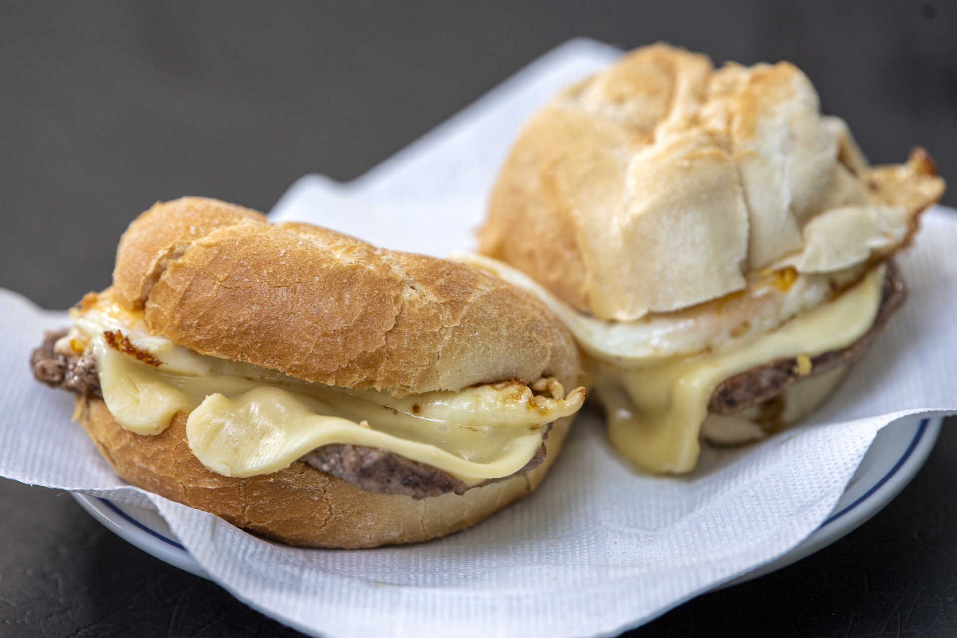Especialidade: 2,5 euros (Sandes de febra em vinha-d’alho, com ovo frito e queijo)