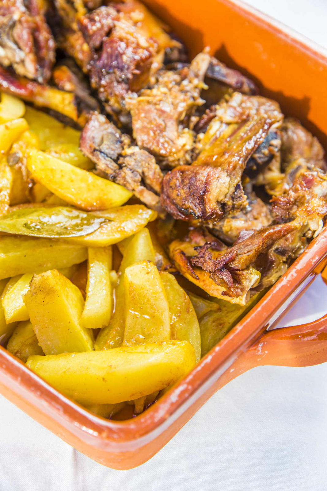Das janelas, em madeira escura, avista-se a Serra da Estrela como pano de fundo, que nos faz companhia ao longo da refeição, numa das três salas deste rústico e familiar restaurante, com paredes de pedra, lareiras a lenha prontas para receber os meses frios e barris de vinho a servirem como algumas mesas. Da cozinha de Paulo Menano, saem propostas em doses generosas, apoiadas nos produtos regionais e no receituário tradicional, como é o caso do cabrito, marinado de véspera e assado no forno a lenha, com batata, arroz e grelos; do cozido à portuguesa, com enchidos locais; do bacalhau com broa; ou das febras na telha – ou «fêveras», como surgem na carta, com um denso molho que é secreto. «Isso não revelo», ri-se o proprietário. «Tento fazer os pratos como a minha mãe e avó faziam, mas nunca ficam iguais», acrescenta o dono, natural da Guarda.