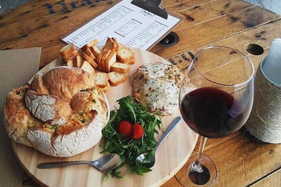 Para beber, há vinhos a preços simpáticos, cervejas e outras bebidas, com destaque para a sangria de espumante e frutos vermelhos. Para decorar o espaço, recorreram a bobines de cablagem e bidões de combustível – são as mesas – e deixaram que a clientela desenhasse e escrevesse numa das paredes.