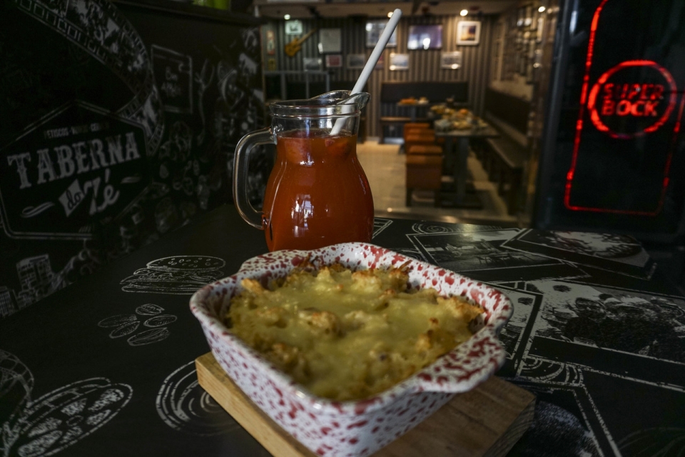 Há uma história antes e uma história depois. Começou por ser uma taberna moderna que não funcionou em São João da Madeira. O espaço transformou-se, então, numa taberna tradicional com comida caseira, petiscos, francesinhas e hambúrgueres, pratos económicos de carne e peixe, e um leite-creme com lugar cativo nas sobremesas.