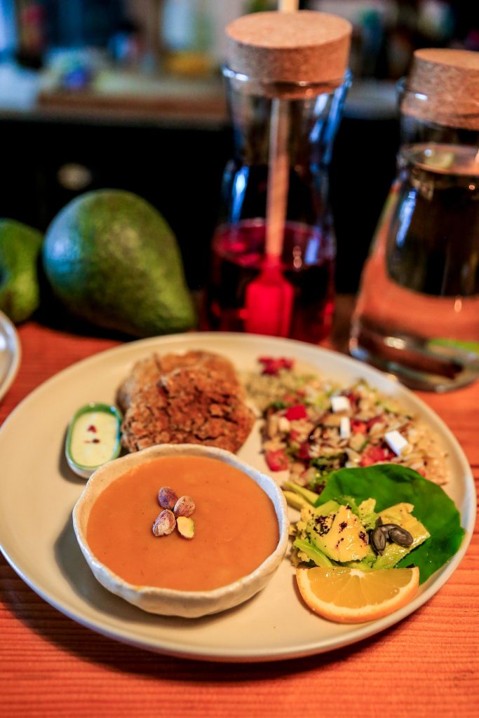 De quarta a sexta, quem visitar o Beija-flor, tanto pode encontrar no menu dia, chilli de batata-doce com feijão branco, burguer de grão com batata-doce, dahl de lentilha coral, como caris variados. Receitas confecionadas frequentemente com aquilo que a horta da associação dá, sejam os colossais abacates que crescem num imponente abacateiro, os tomates, a batata-doce ou a couve.