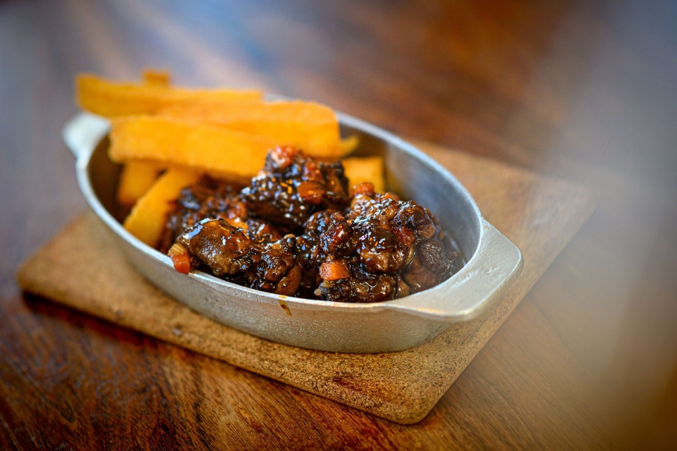 Depois do Manso, João Magalhães instalou-se duas ruas ao lado, ainda na zona do Pinheiro Manso, Porto, para abrir o Pata Gorda, um restaurante “para os locais”, despretensioso, com “comida gulosa, direta e sem preconceitos”, descreve o chef. A ele juntaram-se mais quatro sócios: Francisco Marinho, Ricardo Medina, Vasco Almeida e Jorge Azevedo (com quem já tinha partilhado o primeiro projeto). “O Manso foi o nosso laboratório. Começámos a fazer algumas experiências e a perceber que esta zona aderia mais à comida portuguesa. Por isso o nosso foco é a cozinha tradicional com um twist, mas sem as formalidades do ‘fine dining’. Até gostamos de falar em ‘fun dining’.”