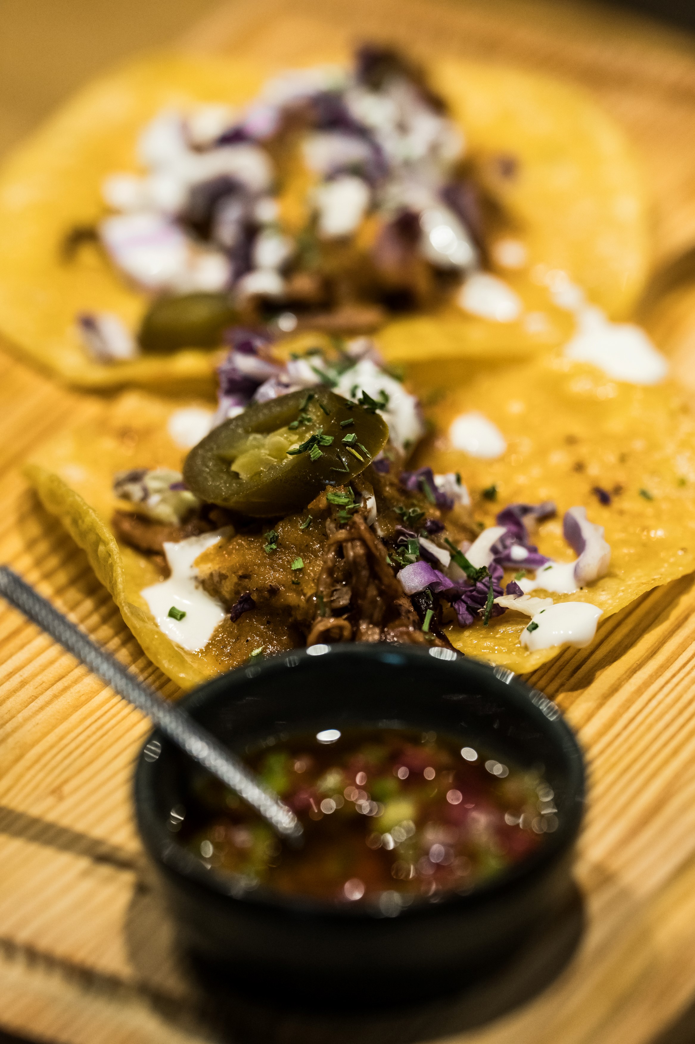 Na carta cabem os habituais exemplares da cozinha mexicana, confeccionados a preceito. São eles os nachos cobertos por guacamole e pico de gallo, na versão vegetariana, e servidos com chilli de carne de porco, frijoles (pasta de feijão preto) e jalapenos, em alternativa; as quesadillas e os tacos, sejam eles de porco com molho barbecue, de frango com molho de mostarda, vegetarianos com abacate e pimentos, ou de camarão salteado.