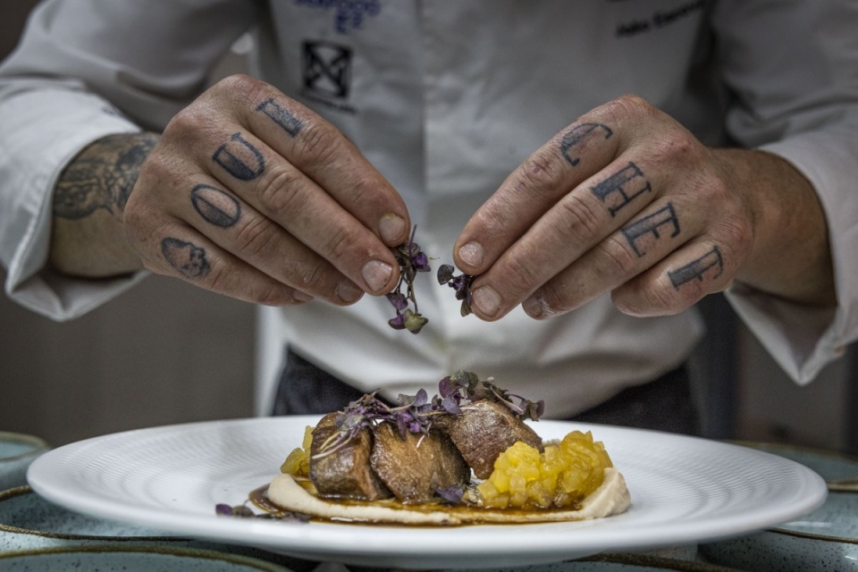 O chef João Escoval, com uma das suas criações.