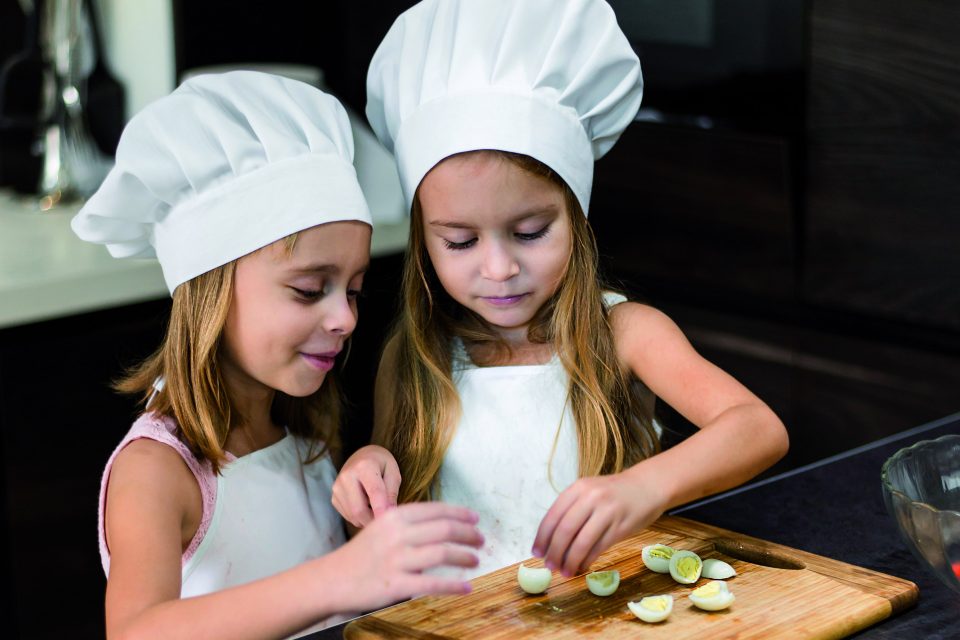 – Se tiver crianças de idades diferentes, pense na melhor forma de os envolver a todos. Os mais novos podem preparar os ingredientes, os mais velhos podem cortá-los. Os pequeninos conseguem amassar massas e os mais velhos podem pesar e temperar.