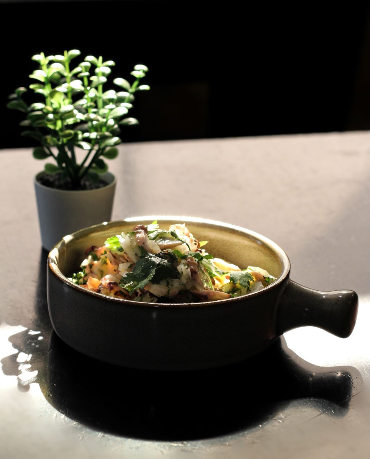 O cardápio é rico e variado, orientação petisqueira que configura tentação à qual não nos fazemos rogados. Fiquei logo viciado nas brilhantes moelas fritas (4,50 euros), ajoelhei junto ao totem dos peixinhos da horta (4,50 euros) e deliciei-me com os ovos rotos com camarão e presunto (7,50 euros). Execução impecável e coisa bem portuguesa é o choco frito com maionese de alho (7,50 euros). Estamos no nirvana, a cozinha não manda nada fora da temperatura ideal e não contemporiza com excessos de gordura. Aleluia. Três pratos de peixe, outros três de carne engalanam a secção de principais, e por 8 euros há pratos do dia que invariavelmente o sábio público que frequenta a casa escolhe. O espírito intrépido de descobridor conduziu-me pela vereda do raviolo de camarão com mascarpone e espinafres (16 euros), seguido pela posta da vazia grelhada (16,50 euros). E como tão bem dizia o personagem de Claudel, Pedro Fabro, de que adianta um caminho que não termina numa catedral? A da nossa mesa surgiu na forma de pijama de sobremesas (20 euros), delícias sincopadas em dança feliz e sápida. Joana Lourenço revela-se oficiante biónica e segura, gerindo casa cheia que ainda rodou algumas mesas, e toda a gente saiu sempre feliz para seguramente voltar em breve. A oferta de vinhos aposta em títulos menos conhecidos de produtores da região de Lisboa, sem prejuízo de oferecer os títulos da confiança dos menos apostados na novidade. Filipe cozinha como respira e fala, aqui está feliz e realizado. E nós queremo-lo é assim, feliz.
