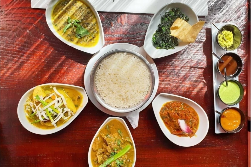 Outra delícia são as miudezes de cabrito salteadas com cogumelos (9,95 euros). Faz lembrar o sarapatel goês e facilmente nos convencemos que tem mão lusa o preparado de sápidos cubinhos. Imperdível o dim sum que aqui dá pelo nome de momo ra chatani (8,50 euros), originalíssimo recheio de porco ibérico e frango do campo numa grande intensidade de sabor. Pelo menos uma vez há que experimentar o brilhante o javali de caça de Évora cozinhado em 9 horas (13,80 euros) com molho tradicional de caril. Havendo, não deixe de provar o melão amargo de são caetano, uma delícia desconhecida dos portugueses e que na primeira investida fica arquivada no coração. Se seguir a nossa recomendação de refeição ideal, vai encontrá-la e saboreá-la com iogurte natural biológico. Muito por onde se perder, muito também para reencontrar na Casa Nepalesa, com certeza.