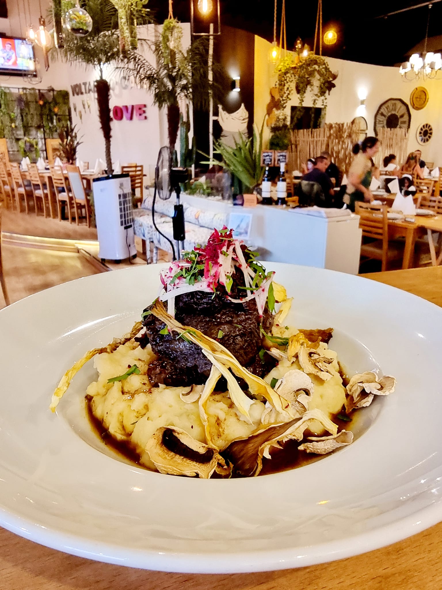 Das sugestões do dia, uma maravilhosa sopa de peixe (4,90 euros), mar e rio em abraço, fez-me logo reconciliar com o lugar e revisitar o incrível talento de Dina, sabores intensos bem casados, produto de irrepreensível qualidade. Destaque nas entradas para os peixinhos da horta com molho tártaro (6,90 euros), crocantes e livres sem sinal gordo de fritura, como se pretende e raramente se encontra. Há torricado com bacalhau assado (22,90 euros), uma vénia inteirinha para a cercana Azambuja que tem sabido manter viva esta peça patrimonial fundamental. De sonho é o polvo frito com puré de batata-doce e grelos (22,90 euros) e de ir às lágrimas – eu fui – são as enguias fritas com arroz malandrinho de tomate (21,90). Estão no zénite da tenrura e do sabor nesta altura do ano e a chef Dina domina todos os pormenores com o mesmo génio. A simples alheira de caça com arroz cremoso de grelos e ovo (15,90 euros) é a mesma que se serve no paraíso e converte a alma mais renitente.