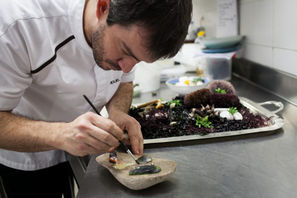 A entrada de Miguel Rocha Vieira para os fogões da Fortaleza do Guincho acontece na sequência da saída de Vincent Farges, que elevou muito o patamar da casa. Filho de Cascais, entre os 19 e os 38 anos andou num périplo internacional de formação e aprendizagem em várias frentes, a ponto de ter conquistado no Costes (Budapeste) a primeira e única estrela da Hungria.