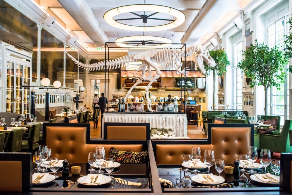 O ambiente da sala do piso de entrada, onde labora o restaurante, é em tudo semelhante a uma brasserie de cozinha à vista. Até os simpáticos – e funcionais – fornos Josper estão cromaticamente integrados na lógica do cobre e ferro. O bloco de cozinha e todos os equipamentos integrados na perfeição, qualidade suprema, põem em sentido quem está por dentro do complexo universo das cozinhas profissionais. Notável.