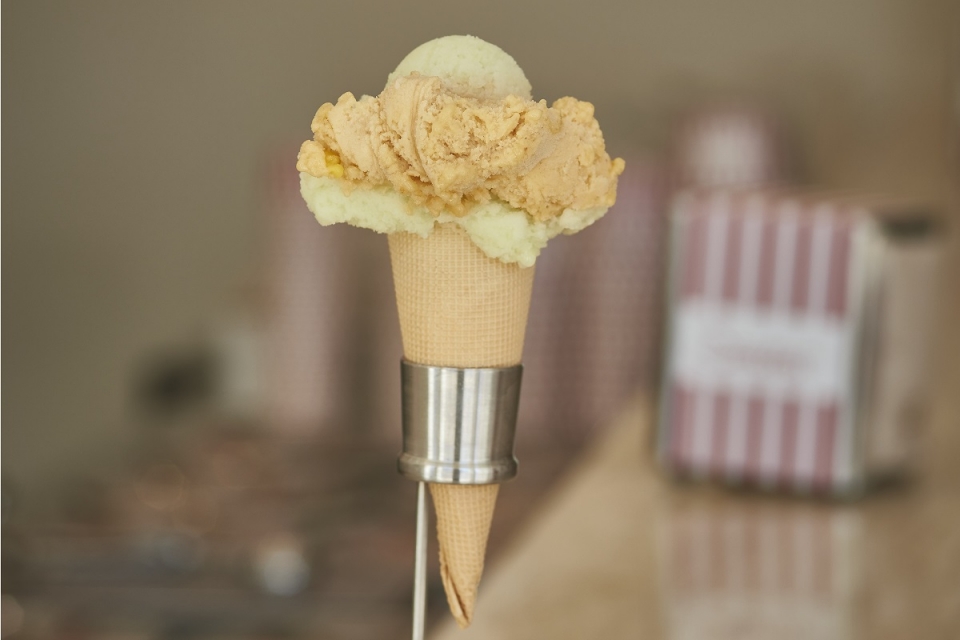 Os próprios cones são feitos segundo a receita original da casa e enrolados à mão, o que torna cada peça única. Aliás, na loja do Chiado, na Rua do Carmo, existe uma zona de demonstração onde se pode ver este processo in loco. “Podem até pedir para que o seu gelado seja servido num cone quentinho acabado de fazer”, adiantam Eduardo e Marta.