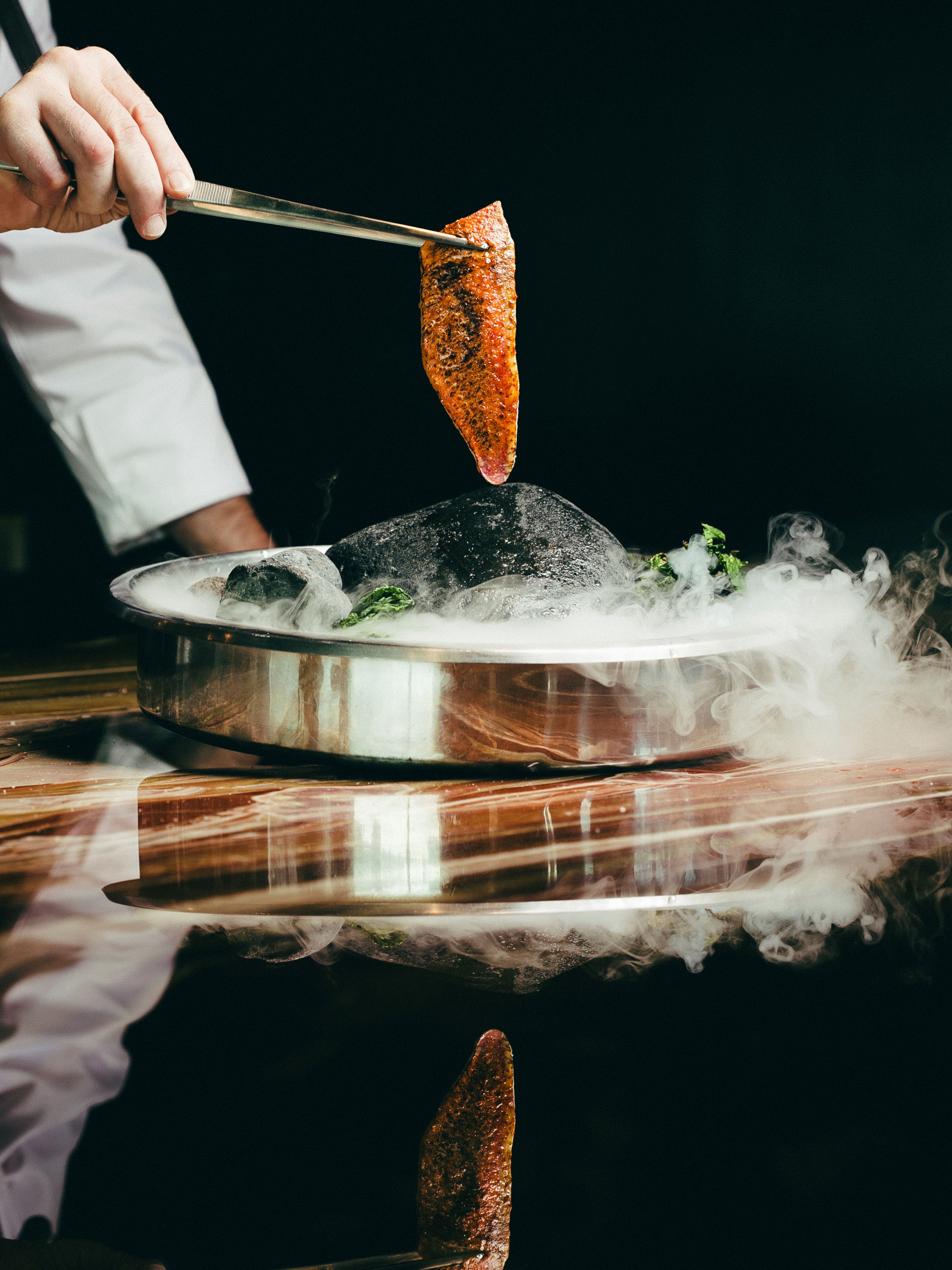 No Desarma, quis criar um palco de homenagem à gastronomia madeirense, com uma cozinha que, não sendo ficada no receituário tradicional, estuda e valoriza o produto, trabalhando-o com as técnicas que melhor o potenciam. “O Desarma é uma batalha de sentidos travada na boca, é uma viagem profunda à Madeira, que começa desde a descoberta da ilha, há 500 anos. Pela sua posição geográfica temos na nossa cozinha uma grande influência internacional, e aquilo que nós fizemos foi através de toda esta influência tentar comunicar uma cozinha mais ancestral. Fiz questão de me focar nos produtos mais endémicos da Madeira, como é o caso do funcho, que deu o nome à cidade do Funchal. Tenho, por exemplo, uma sobremesa criada à volta da história do vinho Madeira e do mel de cana, que são dois produtos muito âncora da ilha”, explica o chef.
