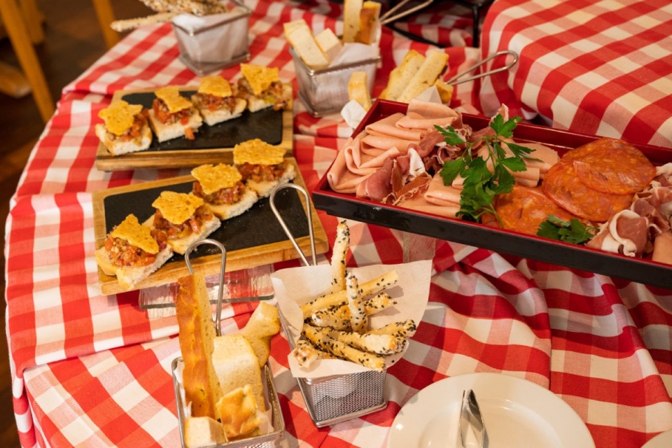 São várias as opções que compõem a ementa, como focaccia, bruschetta de tomate e pesto, palitos de mozarela, minestrone, pizas, risoto de espargos, linguíni com mexilhão e tagliatelle à carbonara. Além dos pratos típicos italianos, há saladas, tábuas de queijos e enchidos, profiteroles com chocolate e gelados.
